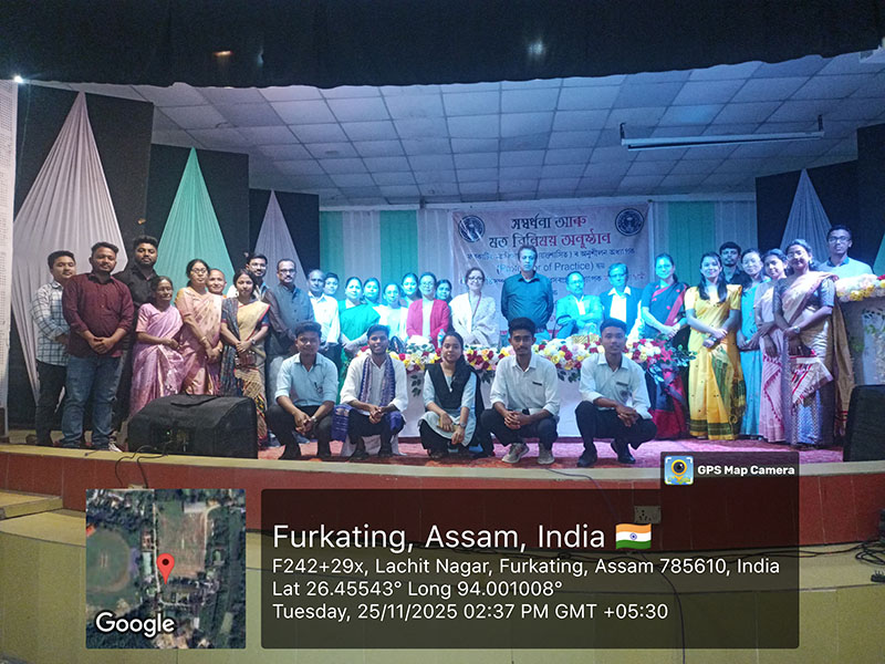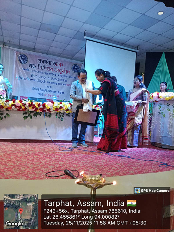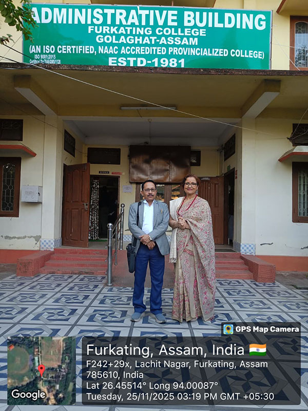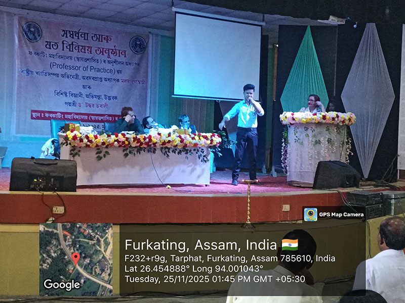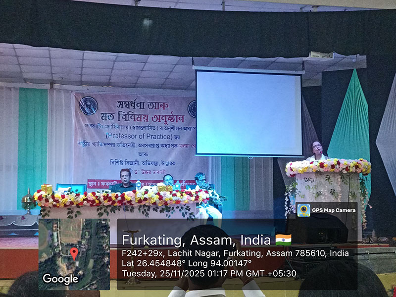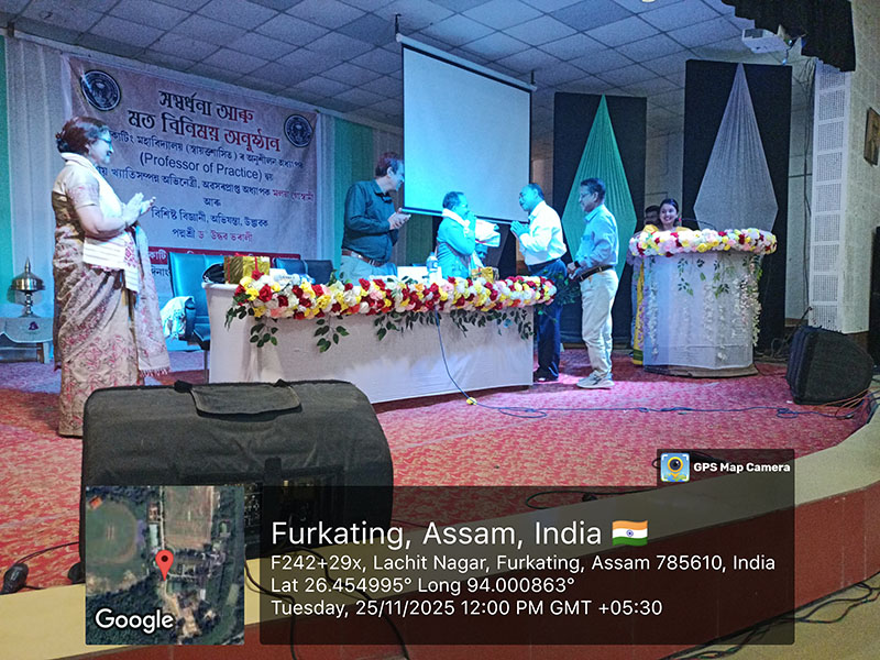 On 25 November 2025, Furkating College (Autonomous) had the honour of welcoming two eminent personalities—nationally acclaimed actress Malaya Goswami and world-renowned scientist and innovator, Padma Shri Dr. Uddhab Bharali, popularly known as ‘The Machine Man’—as Professors of Practice. Both were formally presented with their appointment letters in a special programme held on campus.Their appointment aims to enrich the academic and co-curricular environment of the college by bridging professional expertise with institutional learning.