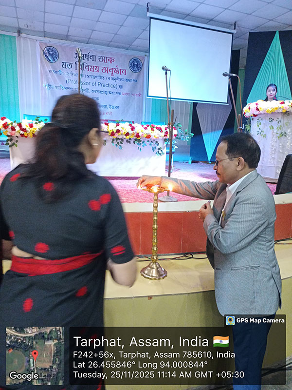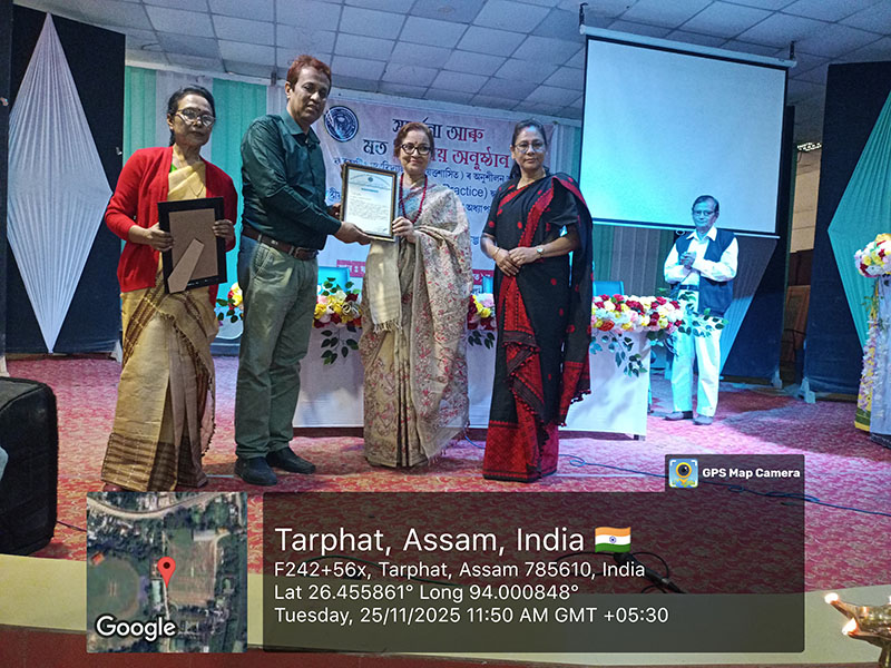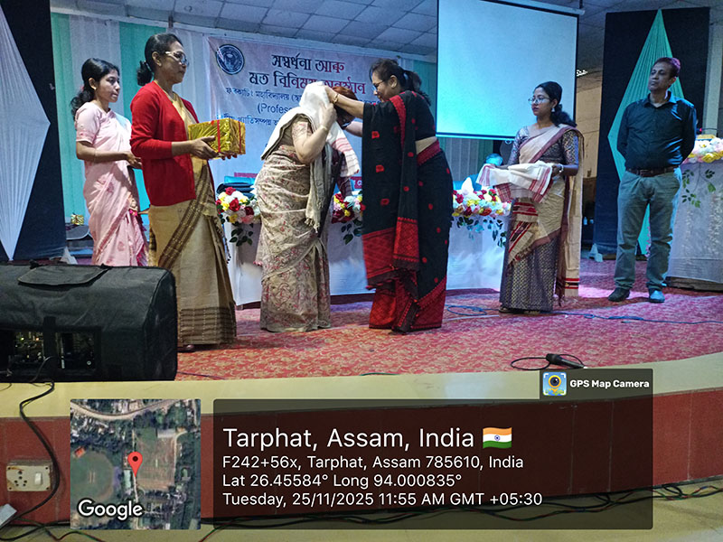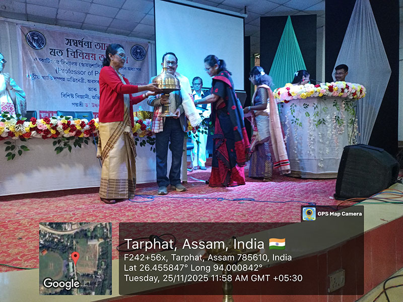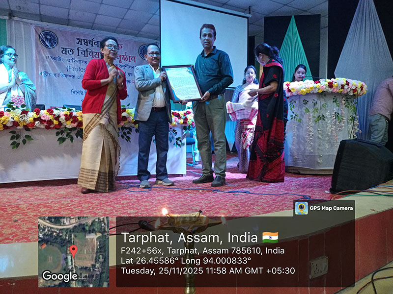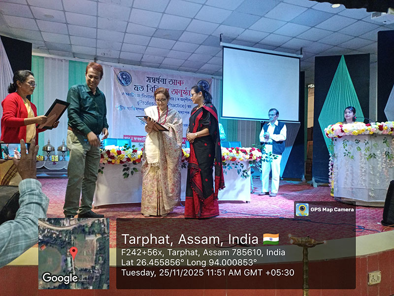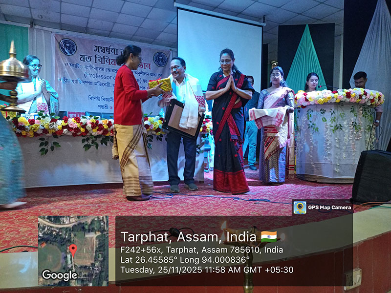 On 25 November 2025, Furkating College (Autonomous) had the honour of welcoming two eminent personalities—nationally acclaimed actress Malaya Goswami and world-renowned scientist and innovator, Padma Shri Dr. Uddhab Bharali, popularly known as ‘The Machine Man’—as Professors of Practice. Both were formally presented with their appointment letters in a special programme held on campus.Their appointment aims to enrich the academic and co-curricular environment of the college by bridging professional expertise with institutional learning.