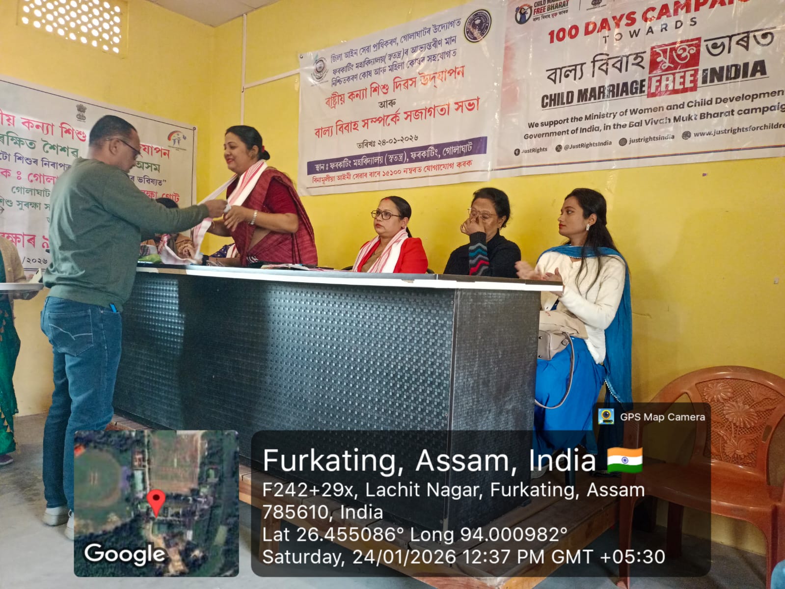 Saturday, 24 January 2026, an awareness meeting on Child Marriage, along with the celebration of National Girl Child Day, was organised at the Narayan Chandra Dutta Conference Hall. The programme was organised by the District Legal Services Authority (DLSA), Golaghat, in collaboration with the Internal Quality Assurance Cell (IQAC) and Women’s Cell of Furkating College (Autonomous), and Koshi Lok Mancha (NGO).